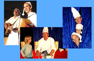 in die Rolle der Clowns, Zauberer, Akrobaten und Jongleure. Zum Abschluß