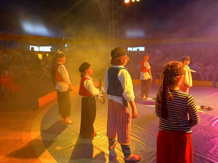 Statt „Glitzerkostümen“ und „trompetenlastiger Orchestermusik“ erzählen wir in jeder Nummer eine kleine Geschichte. Die Akrobaten marschieren als „Feuerwehrleute“ in die Manege, die Jongleure fallen aus dem Bilderrahmen. Die Artisten balancieren als Piraten auf ihren Kanonenkugeln oder summen als Bienen über das Drahtseil.
